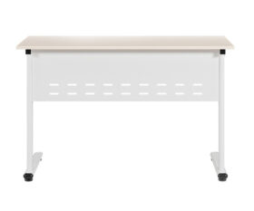 Bàn học sinh 2 chỗ ngồi khung thép sơn trắng tĩnh điện, sử dụng gỗ chất liệu Melamine.
