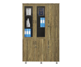 Tủ đựng tài liệu gỗ BRI1960-3BK thiết kế 3 buồng gỗ Melamine, phía trên gồm 3 khoang khung cánh kính để tài liệu, 1 khoang cánh gỗ bên trong có suốt treo áo, phía dưới có 3 cánh mở.